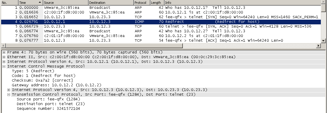 R1# *Mar 1 00:15:07.419: ICMP: redirect sent to 10.0.12.3 for dest 10.0.23.3, use gw 10.0.12.2